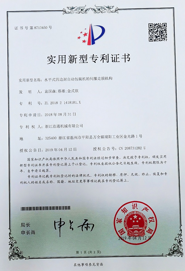 水平式四边封自动包装机的伺伺服走膜机构