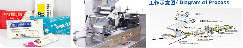 该机是我公司科研人员专门为制药行业的铝塑药版进行再次包装而研制的,使包装后的铝塑药版提高了防潮性能,并能够对药品起到避光的作用。该机采用PLC可编程控制器,使整机运行程序化,并配有打码机在包装时能在外包装上打上生产批号、生产日期、有效期至等文字。该机和手工制袋包装相比,每袋可节约成本20%。我公司科研人员还设计了一种能够适合各种规格铝塑药版的自动加料器,并装有缺版、压版废版剔除装置,提高该机的全自动化程度,实行流水作业。各项性能指标符合"GMP"规格要求。并获三项国家专利。