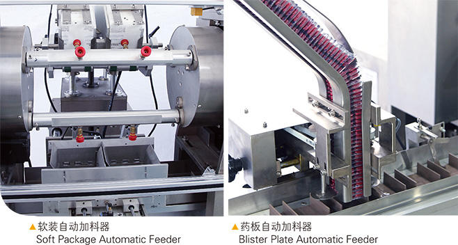 本产品适用于药品铝塑板块、瓶状、膏药袋、颗粒袋及类似袋状包装物的自动加料装盒。上料机构调节方便,可在操作屏上任意设定所需装盒的袋数。在线物料输送与检测,说明书折叠(1-4次折叠)于传送,说明书检测,纸盒吸取成型与传送、物料入盒、打印批号、纸盒两端纸舌封装(也可适用热熔机)缺料剔除及成品输出等过程均属自动完成。该机外形全部采用优质不锈钢罩壳,工作面由有机玻璃门窗进行封闭,严格按医药行业"GMP"标准要求创新设计。该机可以单独使用,亦可与其他设备联动使用,形成成套生产线。